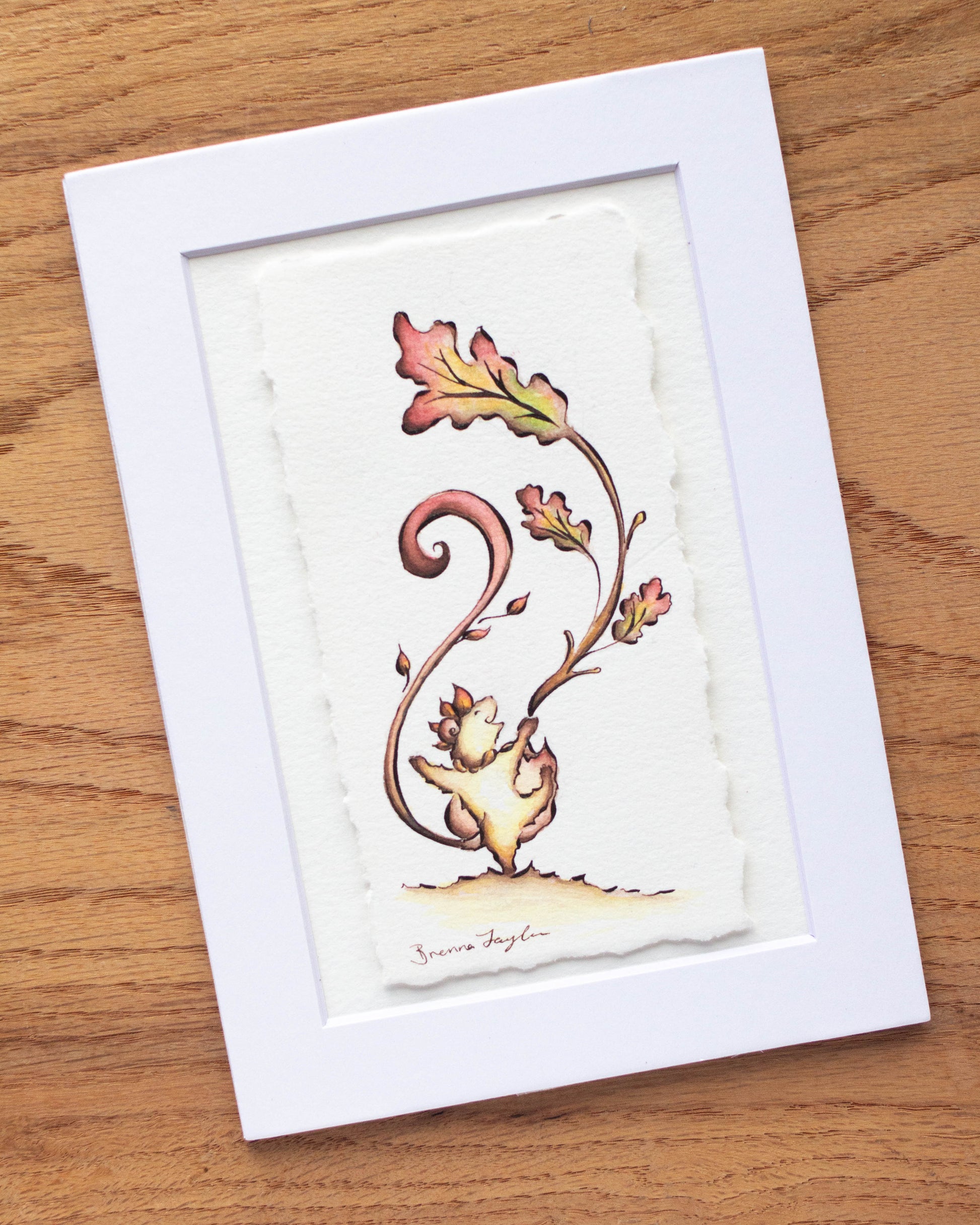 I have hand deckled this piece and gently mounted it with acid free artist tape onto white acid free, textured, 4x6 inch watercolor paper and matted it in mat measuring 5x7 inches on the outside. It's either ready to frame as is or easy to remove from the backing and mount or frame however you choose!