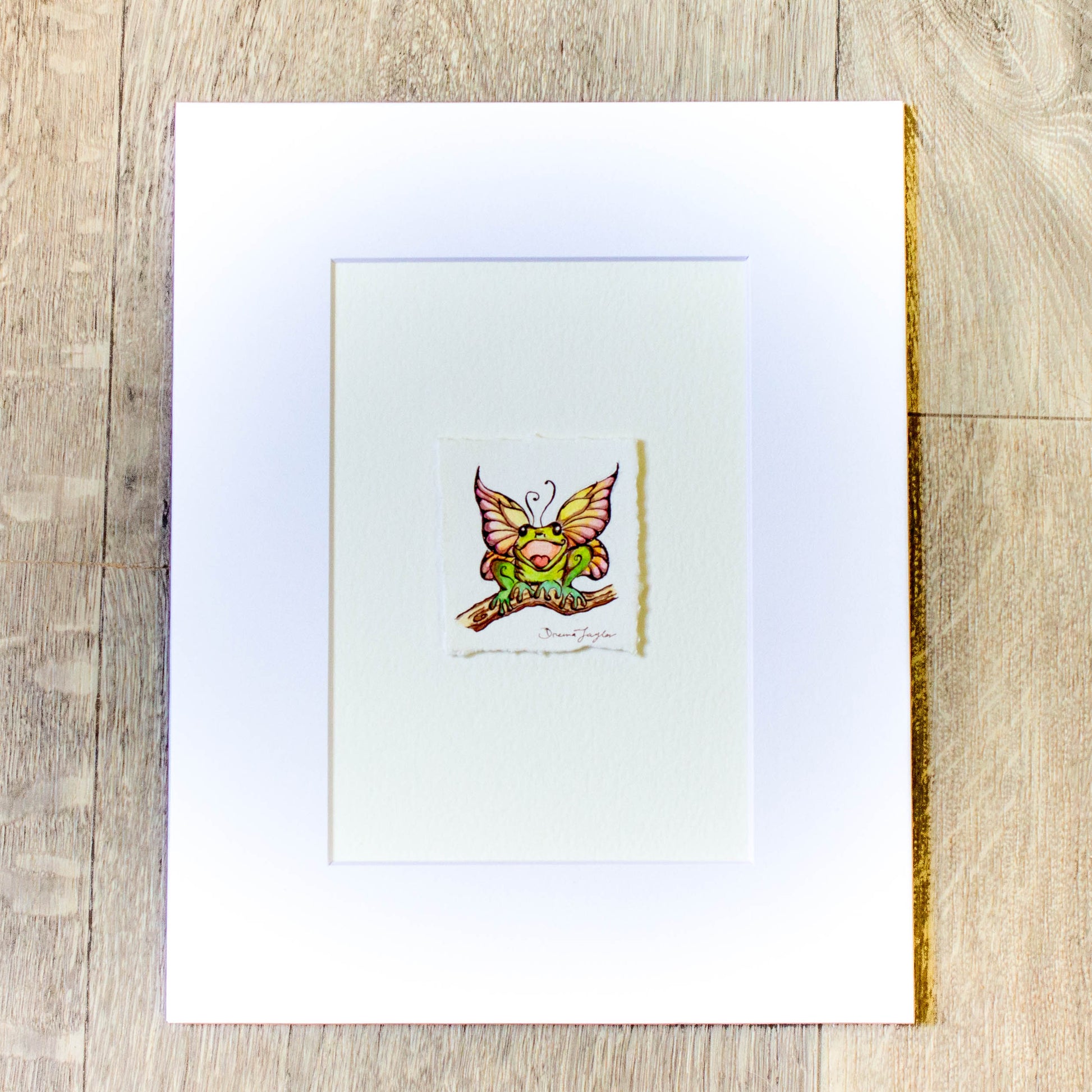 I have hand deckled this piece and gently mounted it with acid free artist tape onto white acid free, textured, 5x7 inch watercolor paper and matted it in mat measuring 8x10 inches on the outside. It's either ready to frame as is or easy to remove from the backing and mount or frame however you choose!