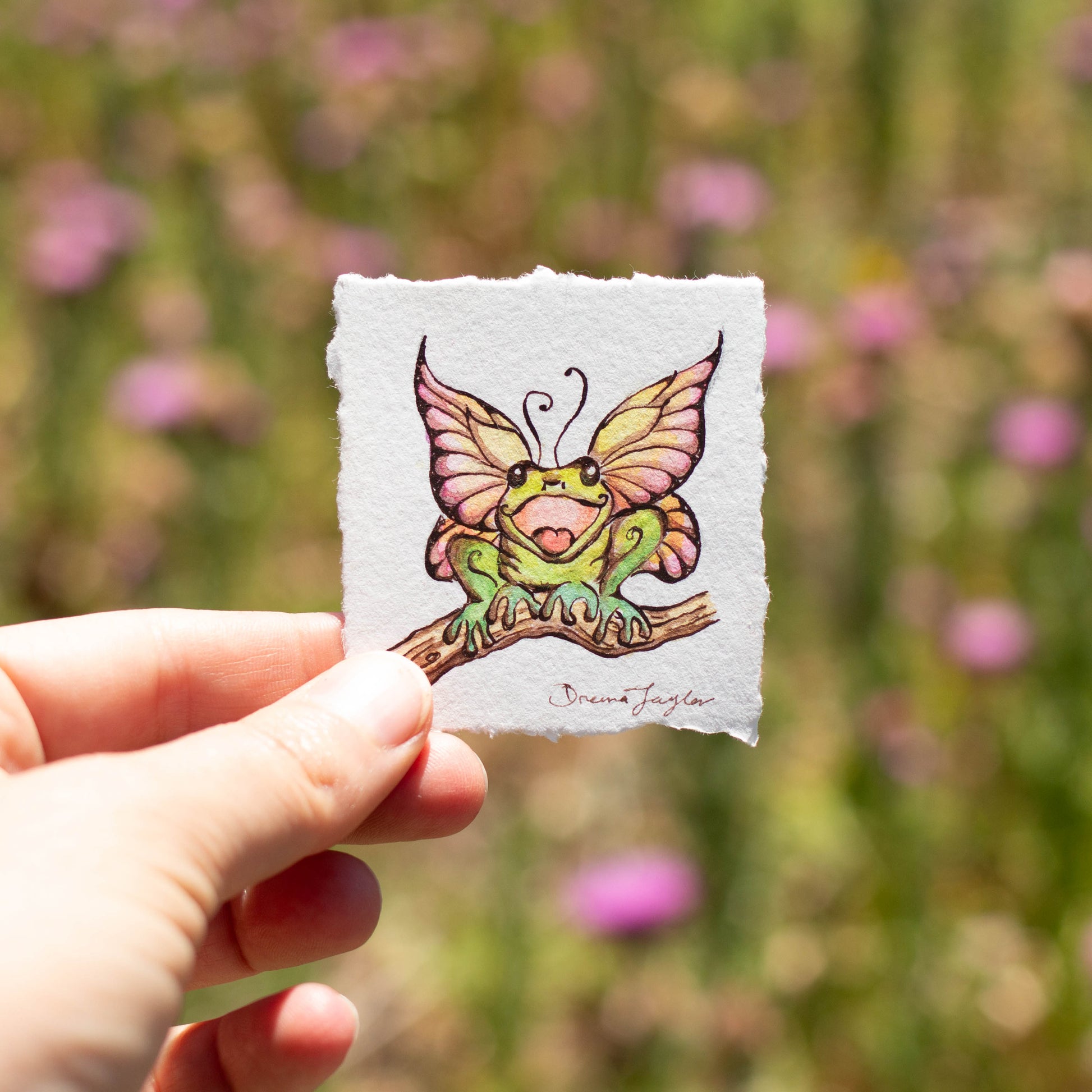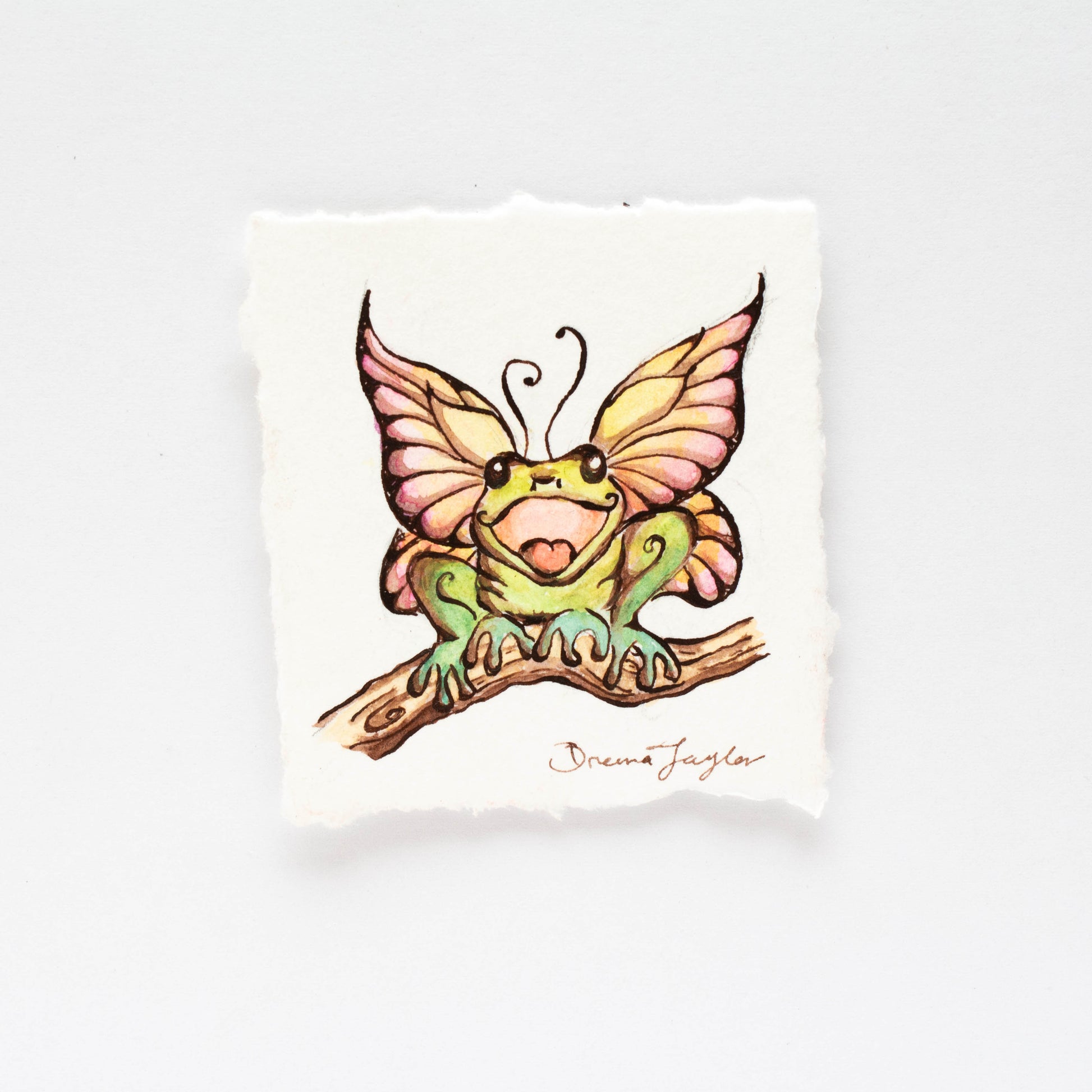 This is a 2.25 x 2.25 inch original India ink and watercolor illustration on 140lb(300g) cold press watercolor paper.
