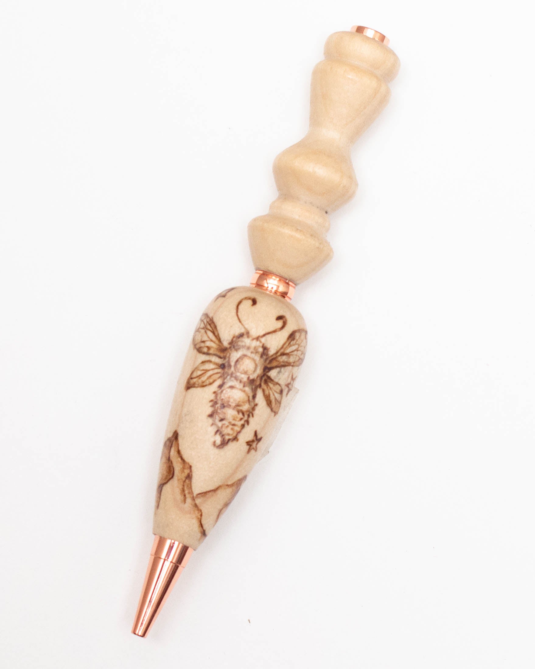 All of the designs on the wood are my own, freehand drawn and then burned on. I don’t ever repeat a design, although I will explore a theme.