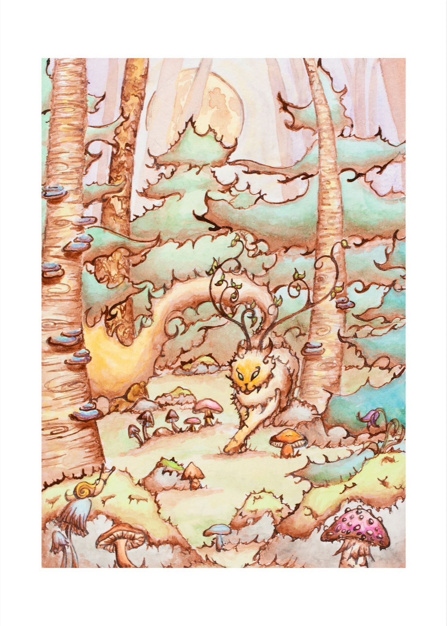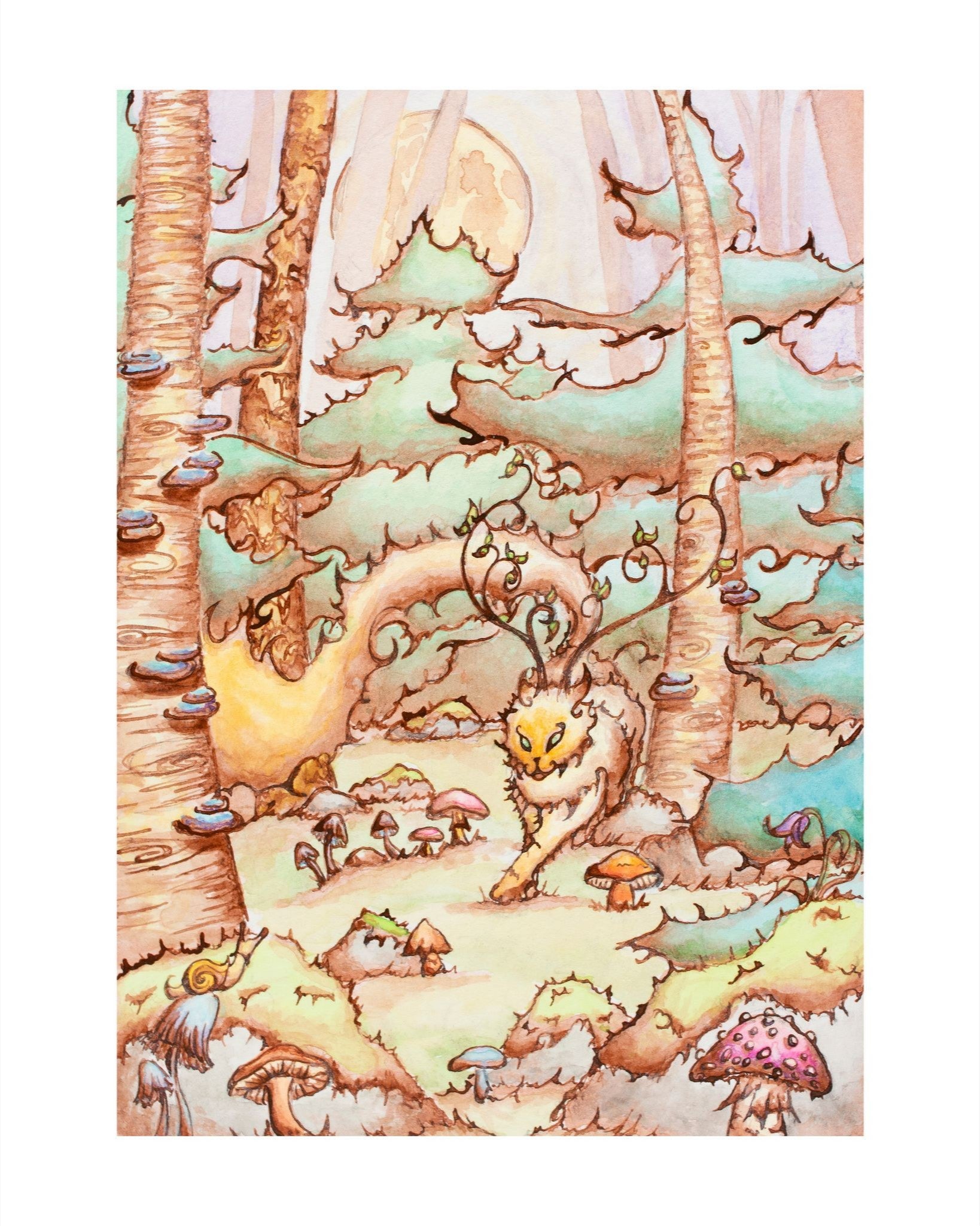Fae Cat in Moonlit Forest Giclee Fine Art Print