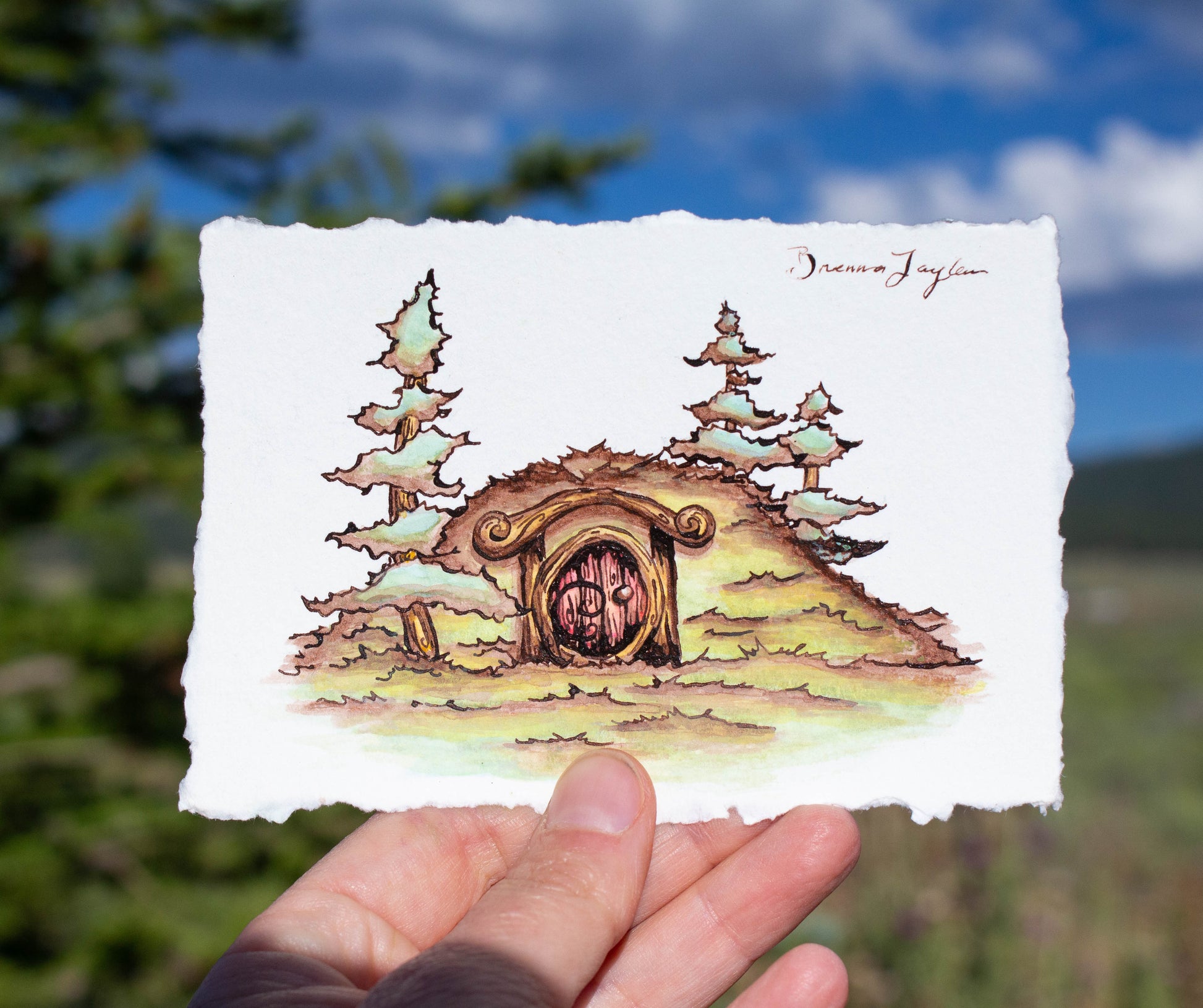 This is a 5 1/8 x 3 1/2 inch original India ink and watercolor illustration on 140lb(300g) cold press watercolor paper.