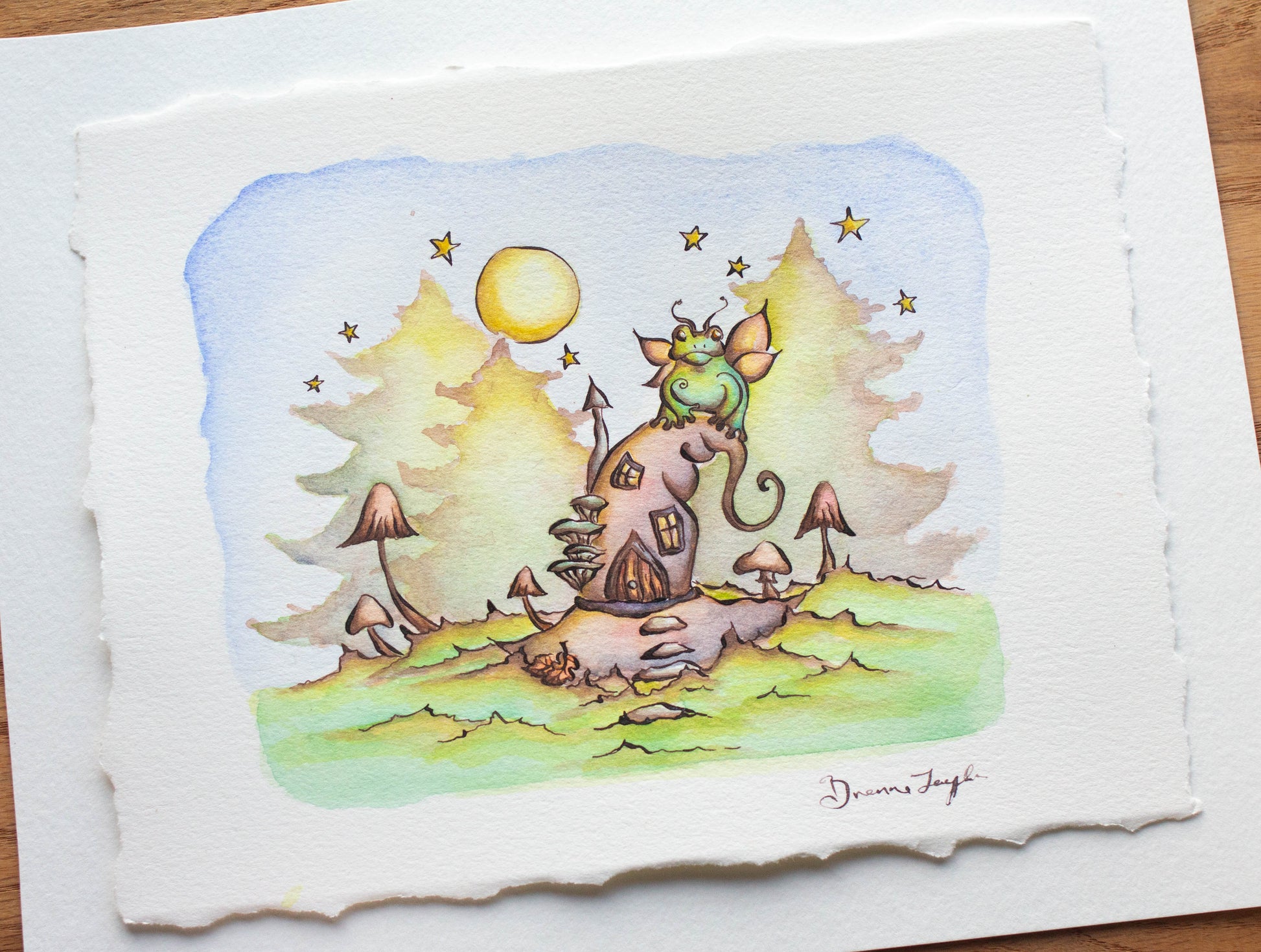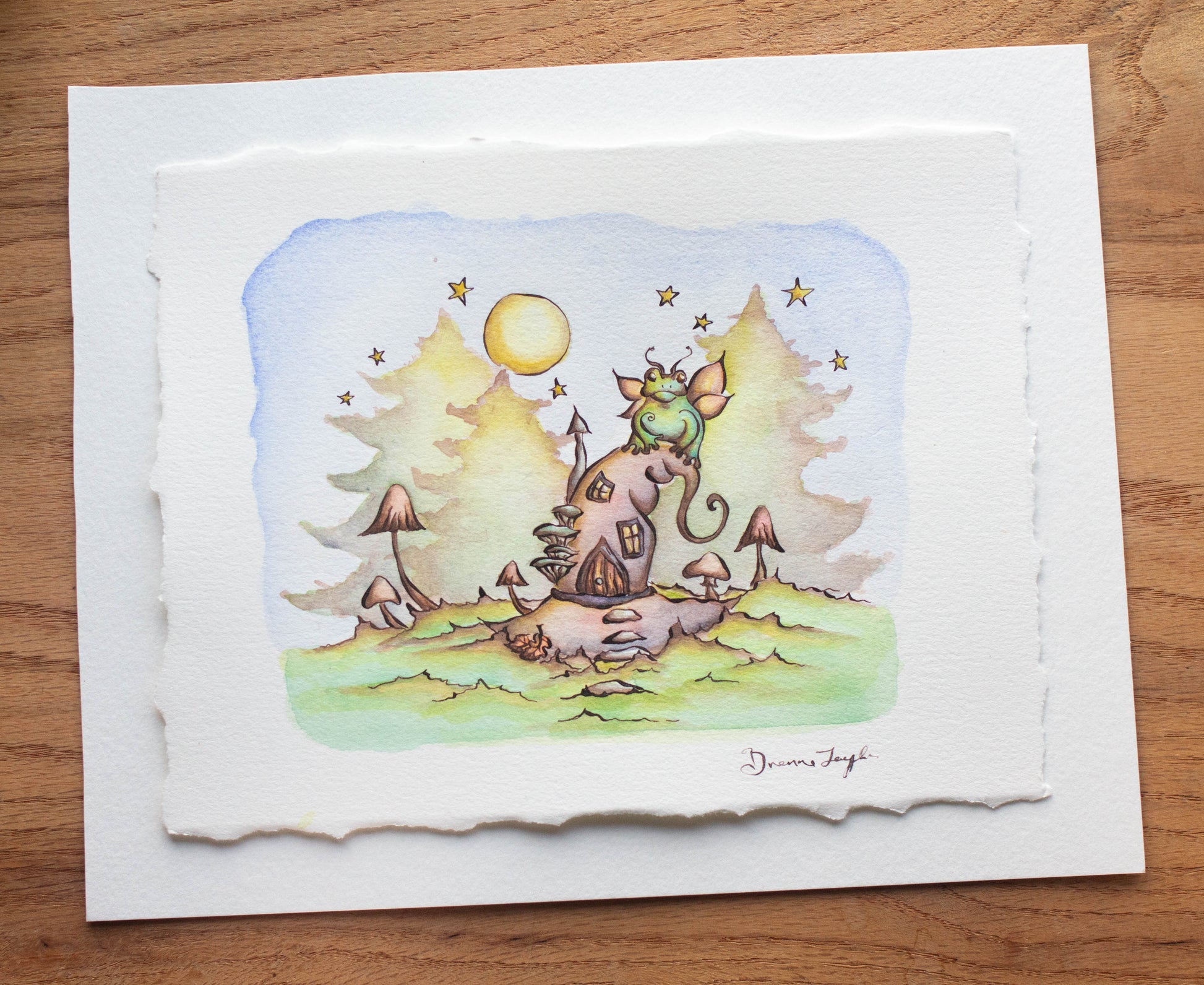 I have hand deckled this piece and gently mounted it with acid free artist tape onto white acid free, textured, 8x10 inch watercolor paper ready to be easily framed! The image itself is roughly 5x6 inches with the white edging adding roughly an inch on the sides and roughly an inch on top and bottom.