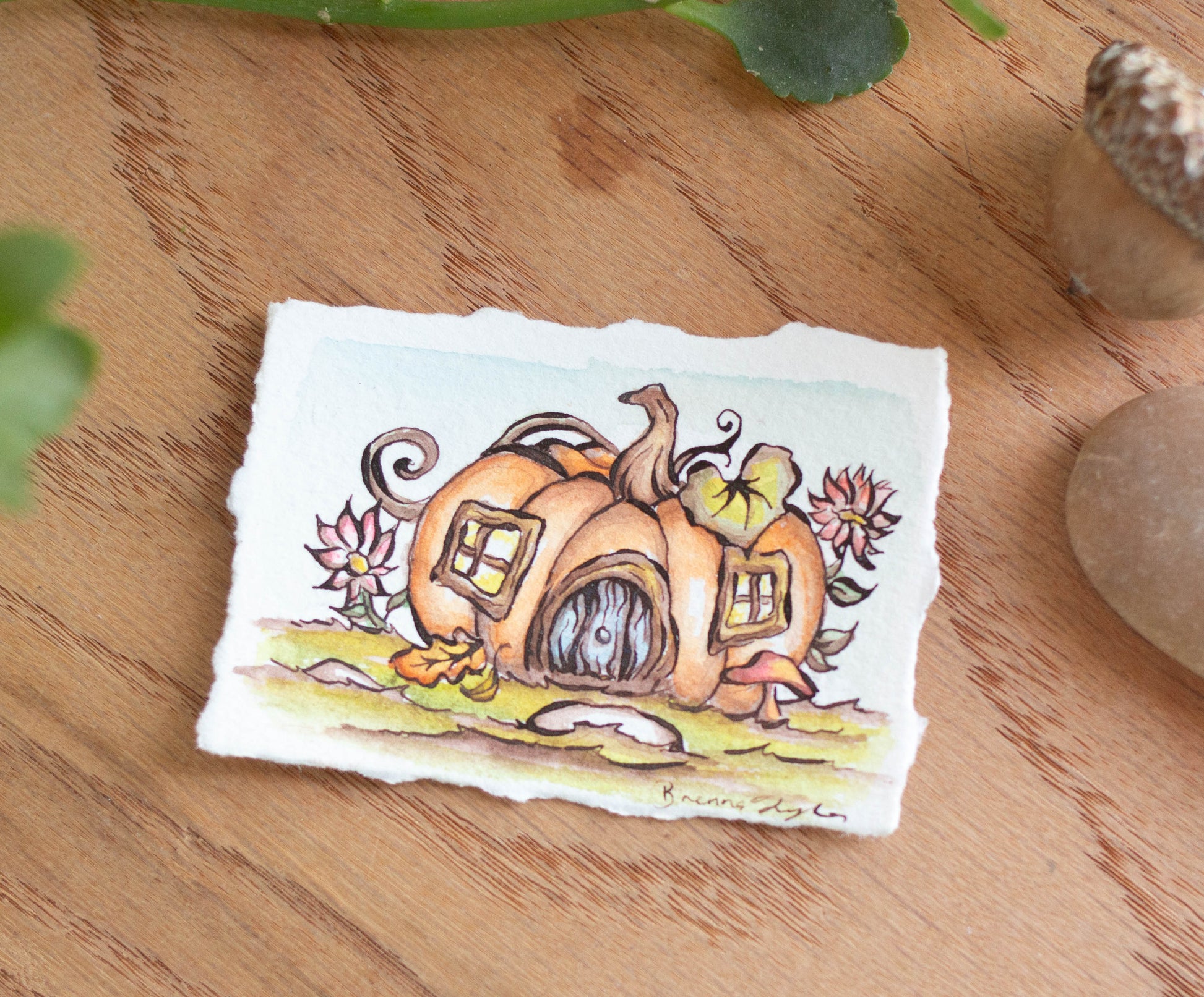This is an original India ink and watercolor illustration on 140lb(300g) cold press watercolor paper.
