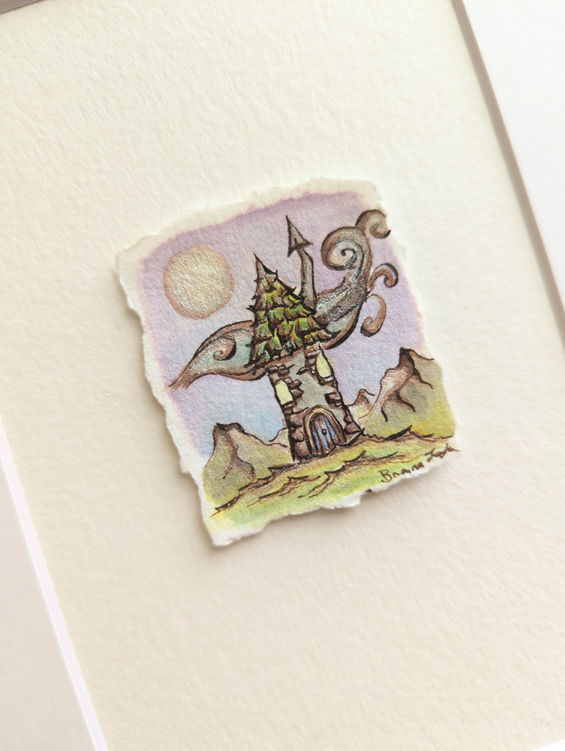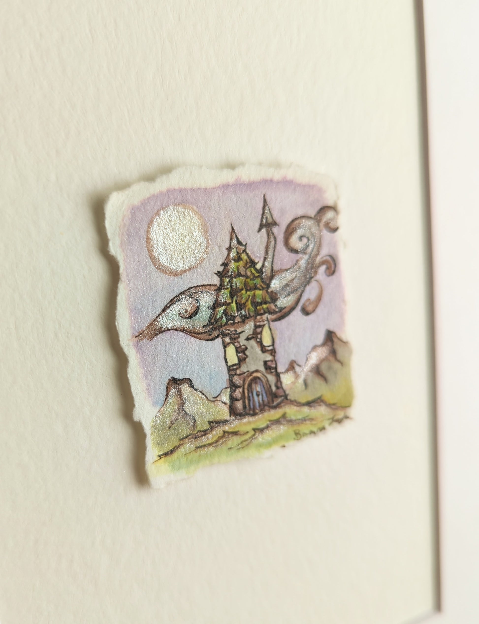 "Silver Night Wizard's Tower" Tiny Original Illustration