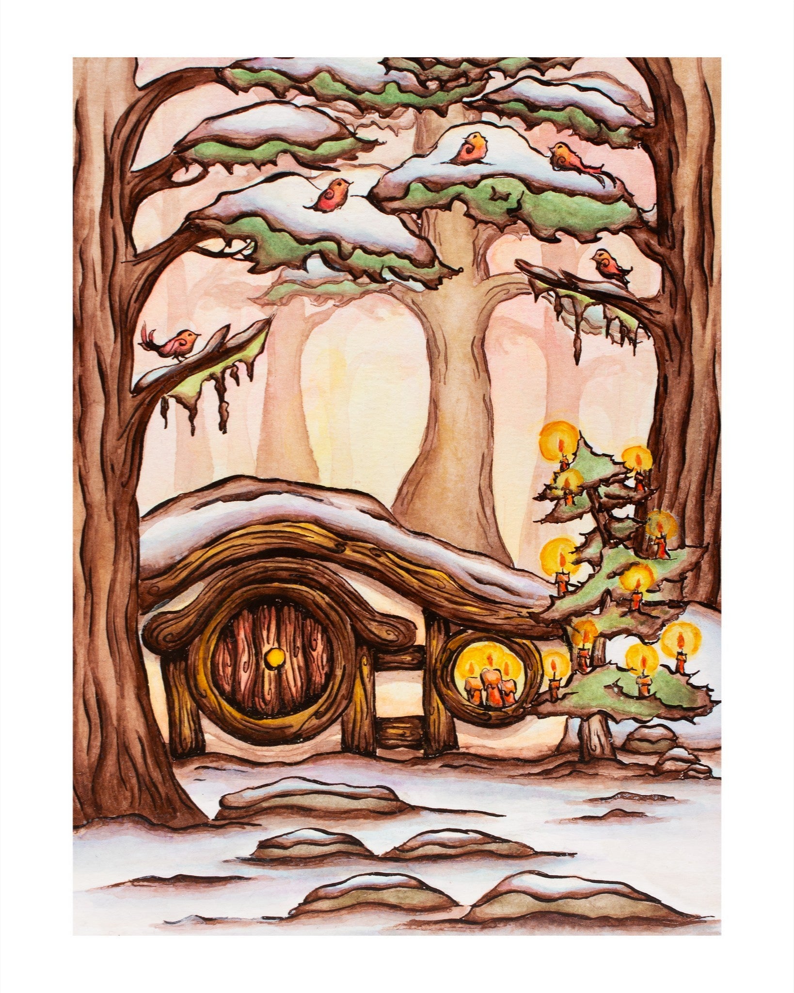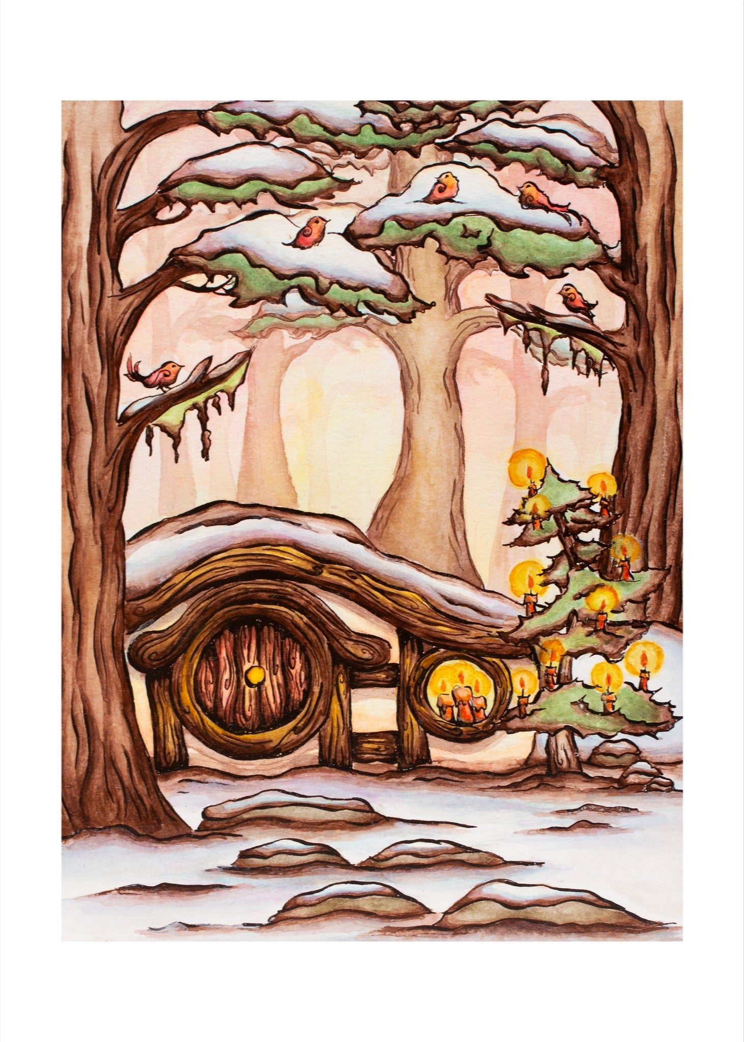The hobbits are warm and cozy in their home this chilly Christmas morning. Can you smell the Christmas pies baking?