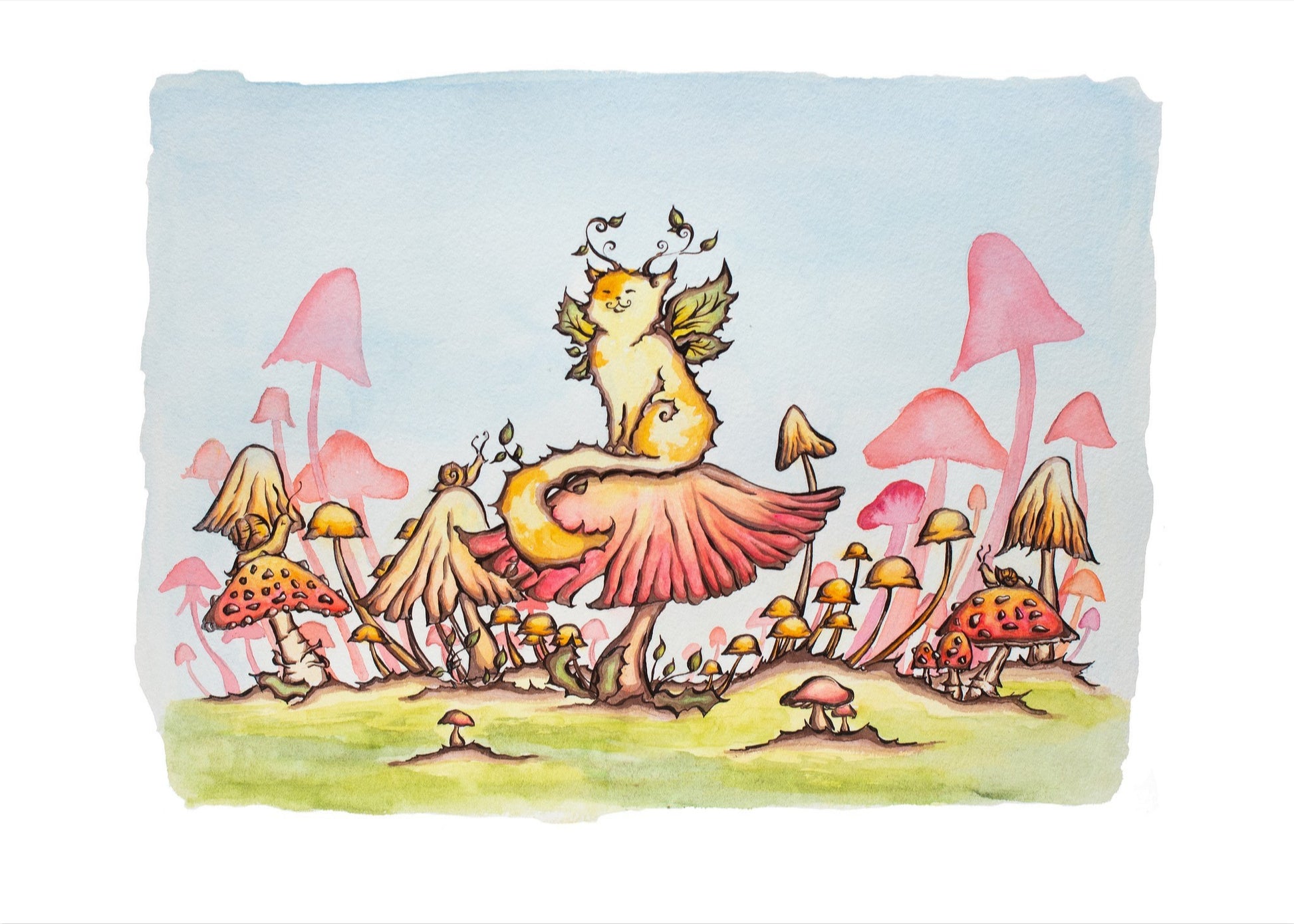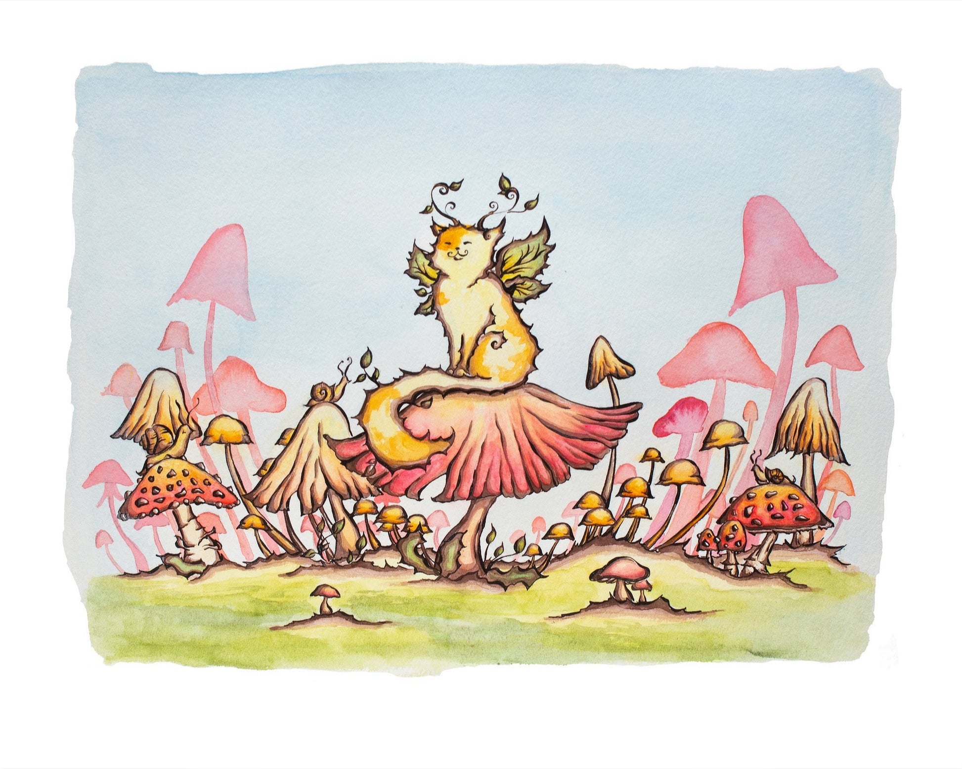 Utter Contentment is an archival print of my original ink and watercolor illustration.