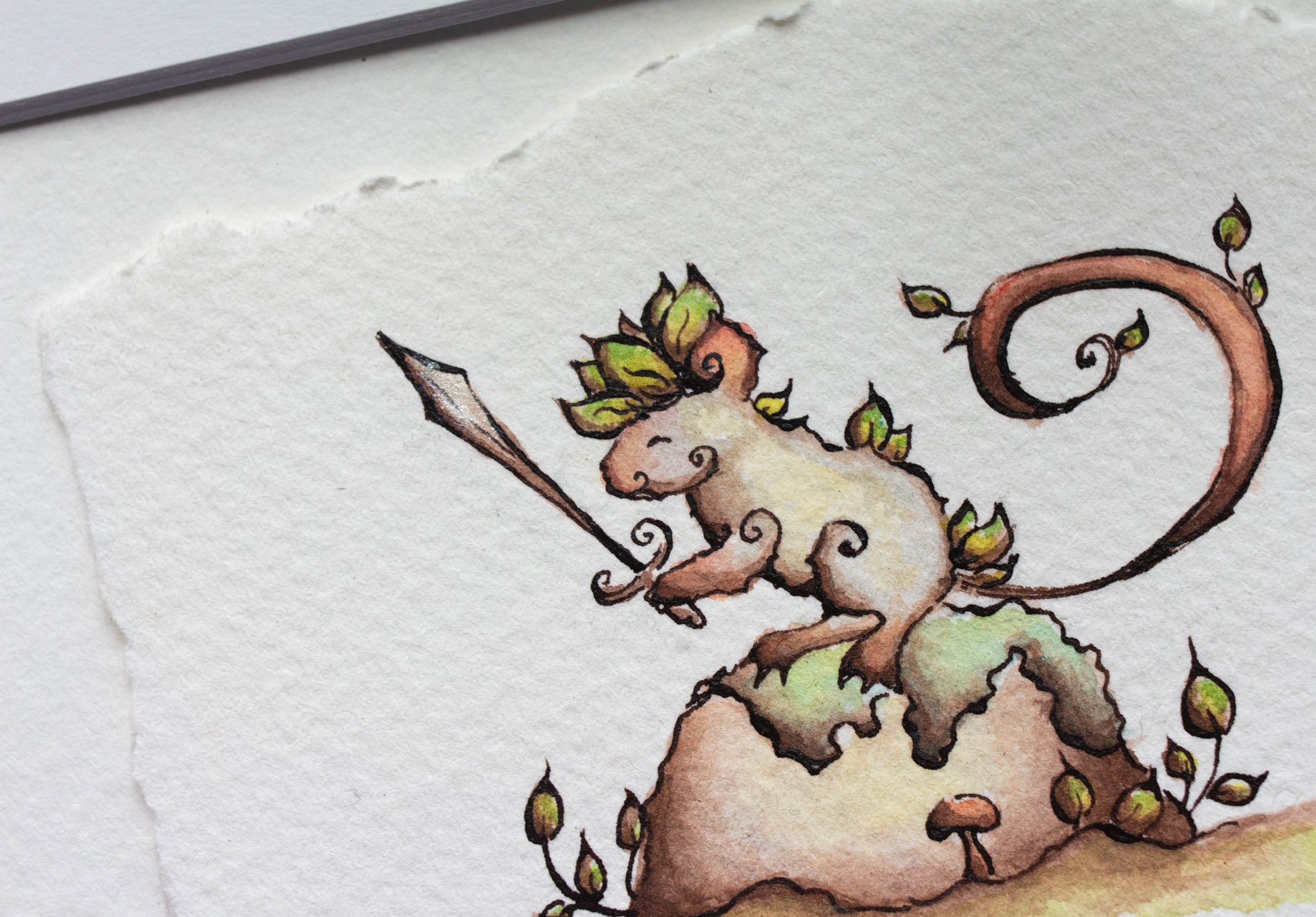This is an original India ink and watercolor illustration on 140lb(300g) cold press watercolor paper.