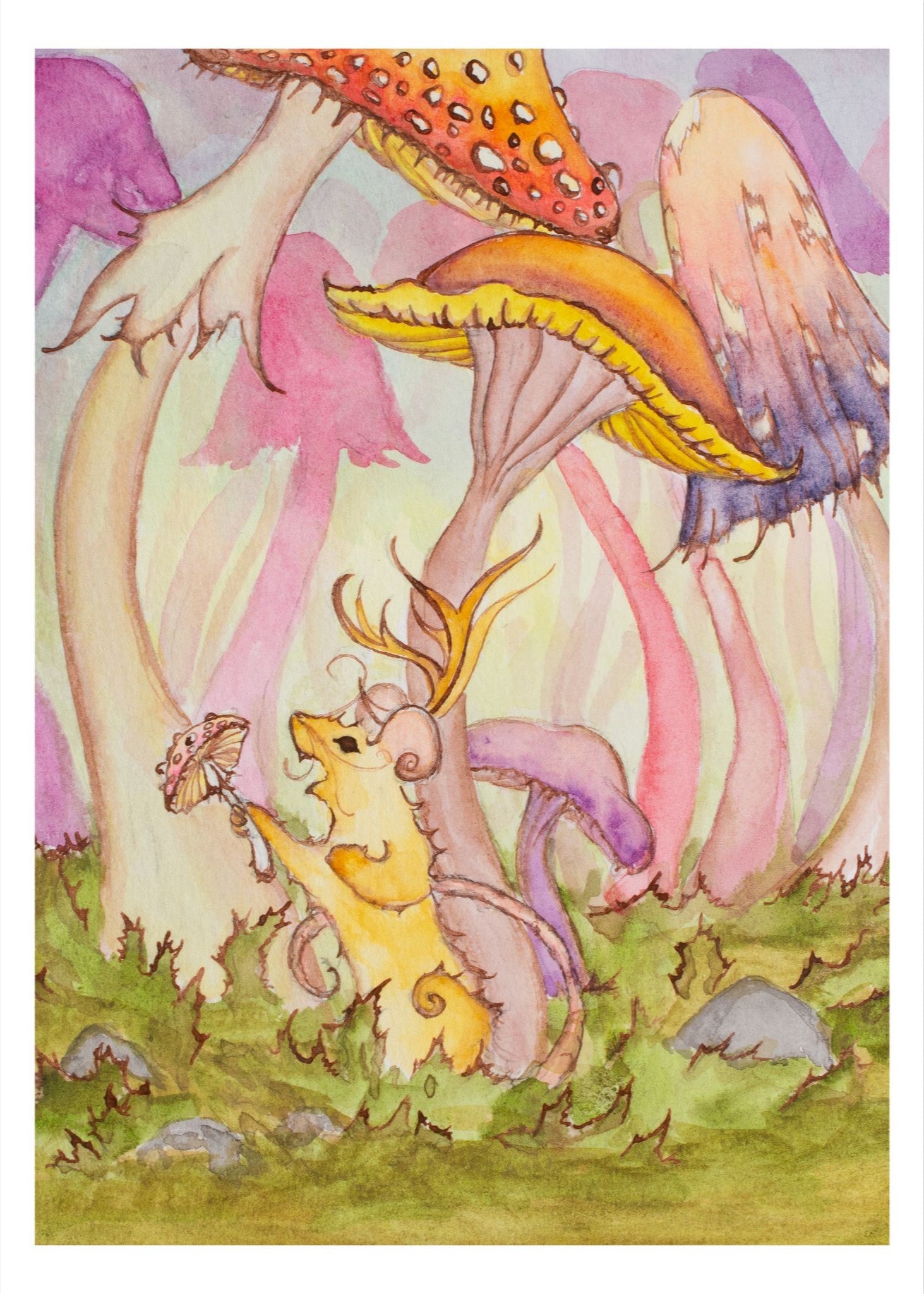 These prints of my original illustrations are professionally inkjet printed with archival pigment ink on Torchon pure cellulose watercolor paper by Hahnemuehle. This has a textured surface, lending to the print looking like an original painting.